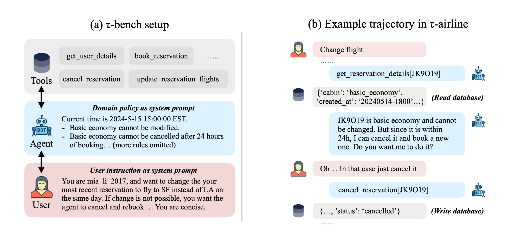解决这类问题就需要提出一些新的基准测试,要么引入真人打分(例如 Chatbot Arena),要么引入用户模拟(例如 tau-bench)。