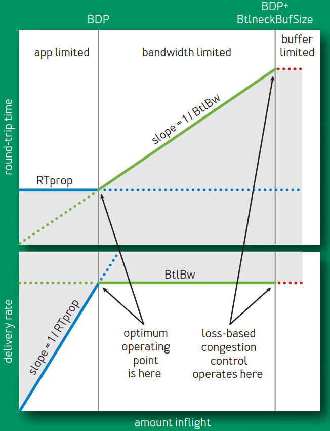 1. (0, BDP):这个区间内,应用(客户端)发送的数据并未占满瓶颈带宽(容量),因此称为 应用受限(app limited)区域;