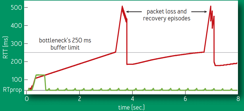 今天,TCP 那些基于丢包的拥塞控制(loss-based congestion control) —— 即使是目前其中最好的 CUBIC11 —— 是导致这些问题的主要原因