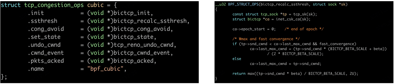 setsockopt(fd, IPPROTO_TCP, TCP_CONGESTION, "bpf_cubic", strlen("bpf_cubic"));