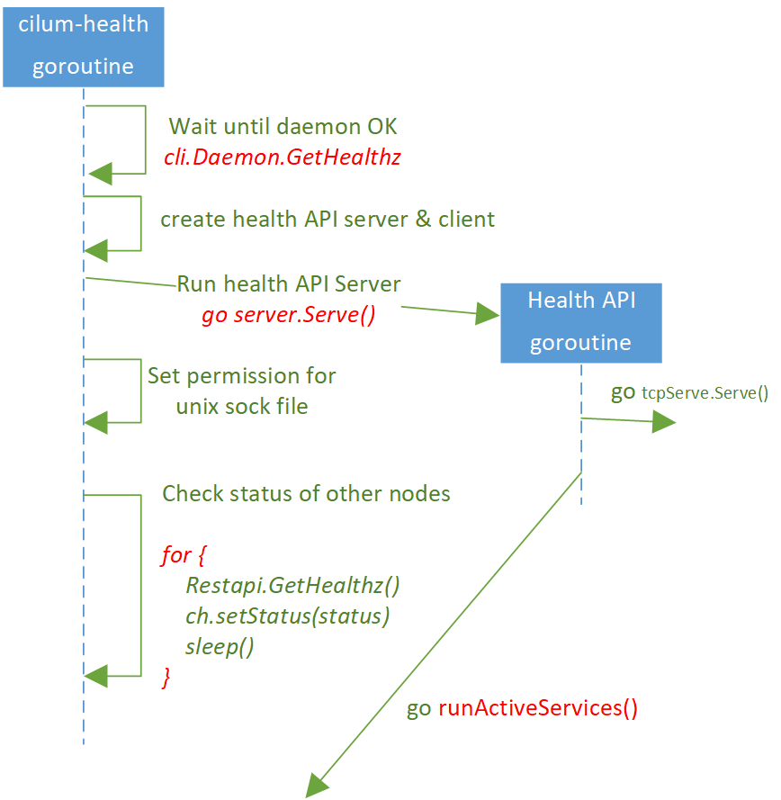 3. Call go ch.server.Serve(): start cilium-health API server in a new goroutine,