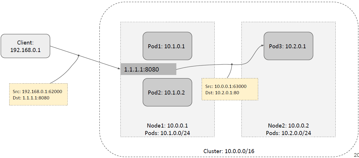 2. 如果在其他节点,还需要做 SNAT 或者 DSR。