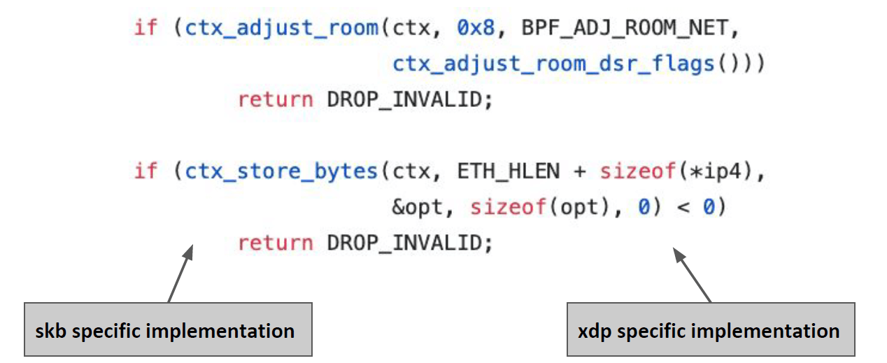 例如对于 XDP 场景,编译时这些宏会被相应的 XDP 实现替换掉: