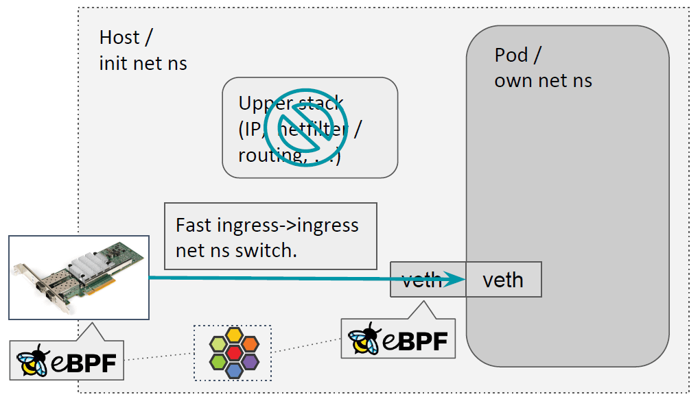 入向流量,会有快速 netns 切换,从宿主机 netns 直接进入容器的 netns。