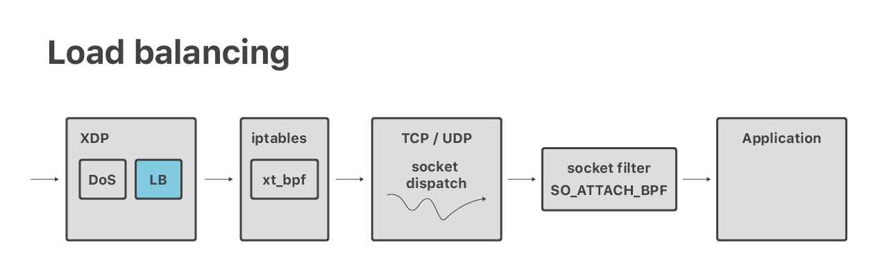 除了 DoS 之外,我们还在 XDP 中做 4 层负载均衡。这是个新项目,因此我们对外的 分享还不多。简单来说(做这件事情)是因为:在特定的情况下,我们要能通过 XDP 查询 socket。