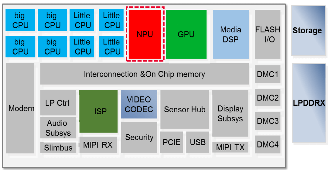 现代手机芯片不再是单功能处理器,而是集成了多种芯片的一个 片上系统(SoC), 华为 NPU 芯片就集成到麒麟手机芯片内部,随着华为 Mate 系列高端手机迭代。