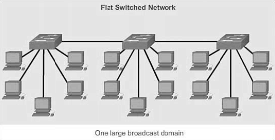 当更多的设备需要接入网络时,就添加集线器(hub)和交换机(switch)。扁平网络设计 的缺点是很难控制广播流量。当网络中的设备越来越多时,响应时间也会越来越慢,最终使得网络不可用。