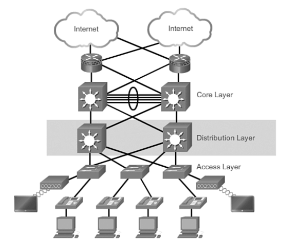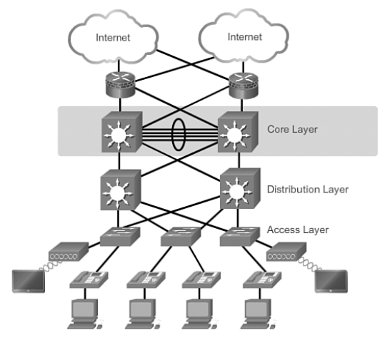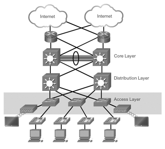 本节讨论分层网络模型的三个层:接入层、分发层、核心层。