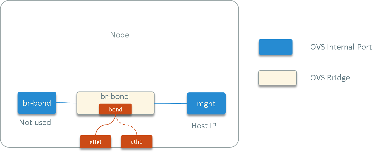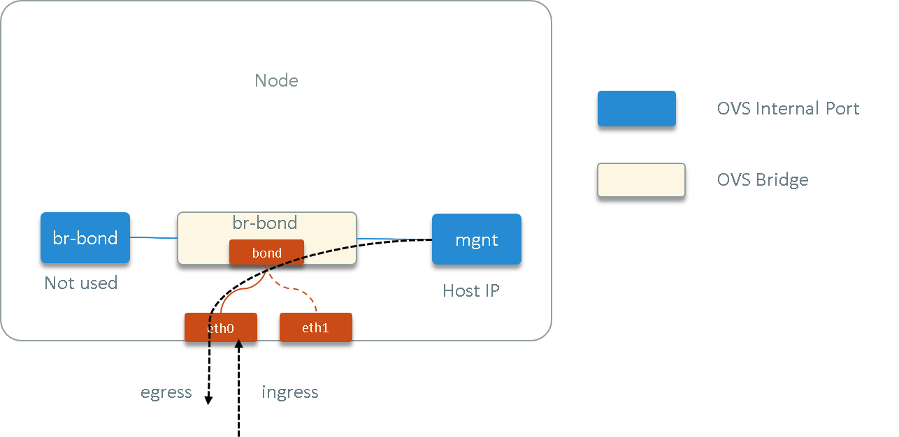 But in thoery, if a NIC serves as a slave device of a BOND, that NIC would never need an IP address, unless it stops to serve as bond slave device. So in my understanding, if a L2 software (e.g. OVS, Linux bond) makes a bond out of eth0 and eth1, it should remove those two rules, leave only the last rule (via mgnt) there. With this understanding/guessing, we checked our Linux Bond hosts, indeeded there were no such rules, just the last one there.