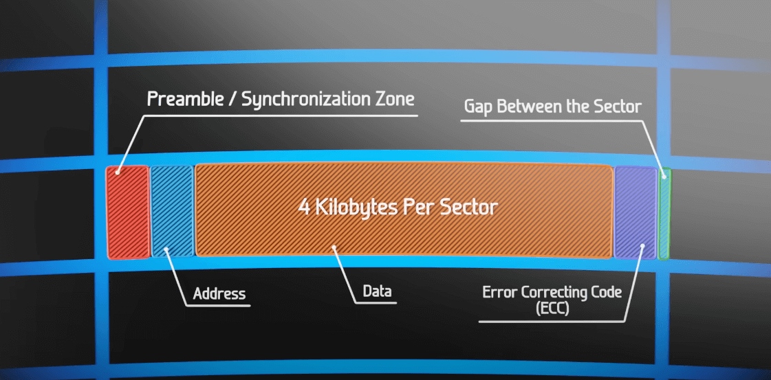 了解了粗粒度的硬件构成之后,现在让来深入到盘片的内部,看看它的微观组成。
