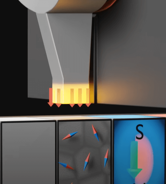 下面具体看一下如何磁化一个微块(相当于写入 1bit 数据)。