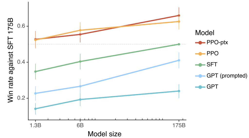 - 使用 175B RM 和值函数大大增加了 PPO 的算力需求。