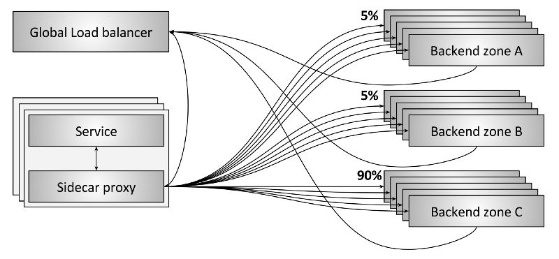 - 每个 sidecar 同时和位于三个 zone 的后端通信;