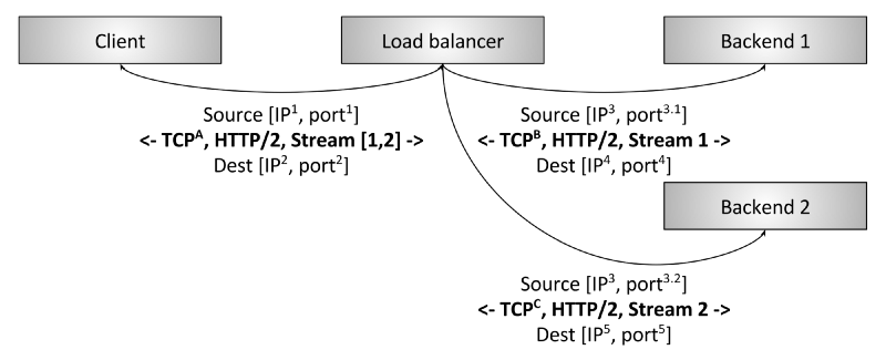 例如,我们假设客户端正在和负载均衡器 1.2.3.4:80 通信,选中的后端是