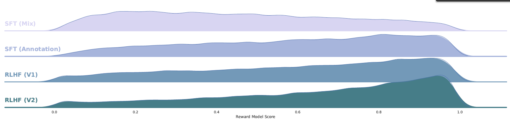 Still, as Goodhart’s Law states, when a measure becomes a target, it ceases to be a good measure. To ensure our measure won’t diverge from the human preferences, we additionally used a more general reward, trained on diverse open-source Reward Modeling datasets. We have not yet observed any such divergence, and hypothesize that iterative model updates may be helping to prevent this. As a last verification step to ensure no regression between our new model and the previous one, we use both to sample during the next annotation iteration. This enables a model comparison “for free” on new prompts and can help to increase diversity when sampling.