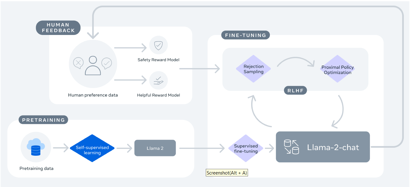 图 4:LLaMA2-Chat 训练和调优过程。