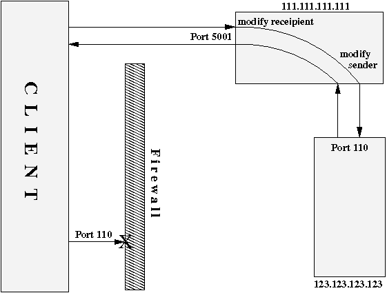 # redirect port 5001 to port 110 (POP3) at 123.123.123.123: