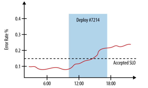 例如,如果一个服务的 SLO 目标是 99.99%,那 error budget 就是 0.01%。接下来,只要 这个产品新发布导致的故障没有使 SLO 降低超过 0.01%,那该产品团队就可以继续要求发 布。