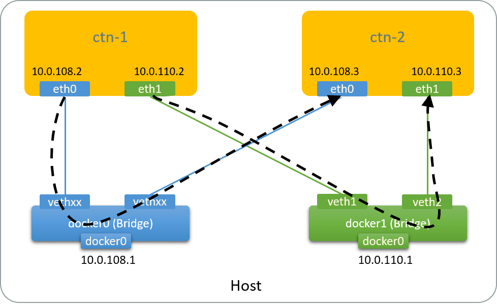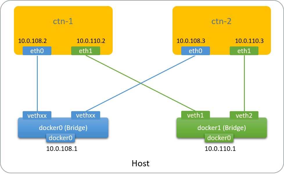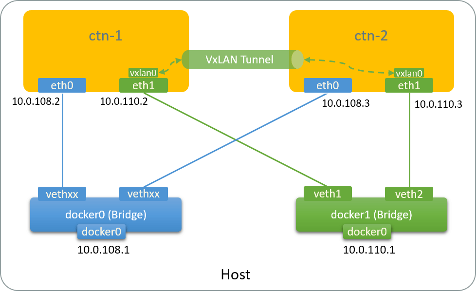 $ ip addr add 10.0.110.1/24 dev docker1    # Configure management IP address for this bridge