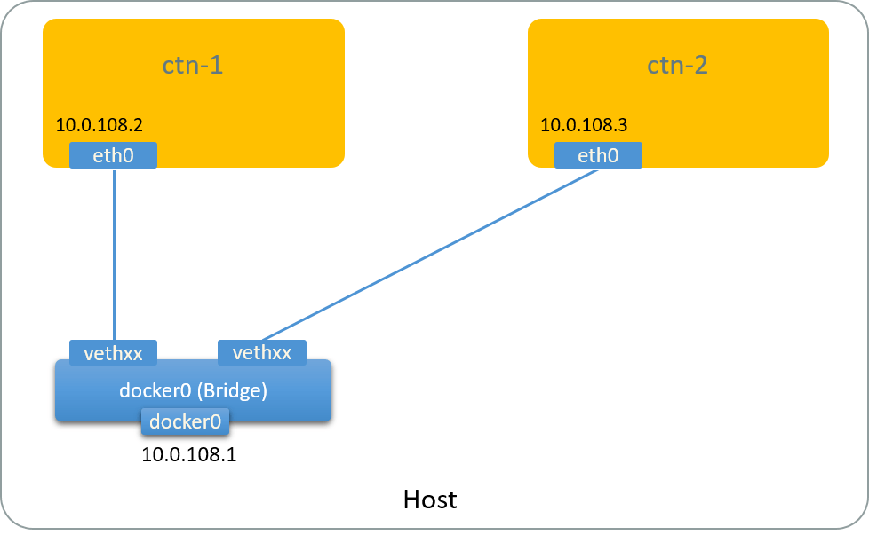 3. When starting a container with docker run with no special networking parameters specified, it will allocate an IP address from 10.0.108.0/23, and attached the container to docker0 bridge with a veth pair. We will see this in the following.