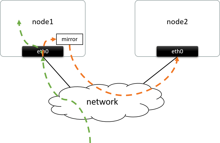 Fig 1.1. Mirroring the ingress traffic of eth0@node1 to a remote node