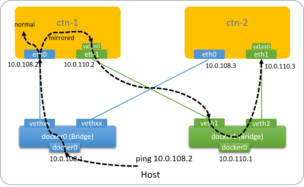 Generate test traffic: ping eth0@ctn-1 from host,