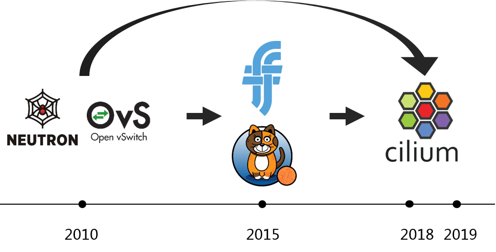 In 2010s, along with the concept of “Cloud Computing”, OpenStack quickly became the dominant virtualization platform in open source community. Along with this trend is its networking stack: Neutron+OVS based large layer 2 network.