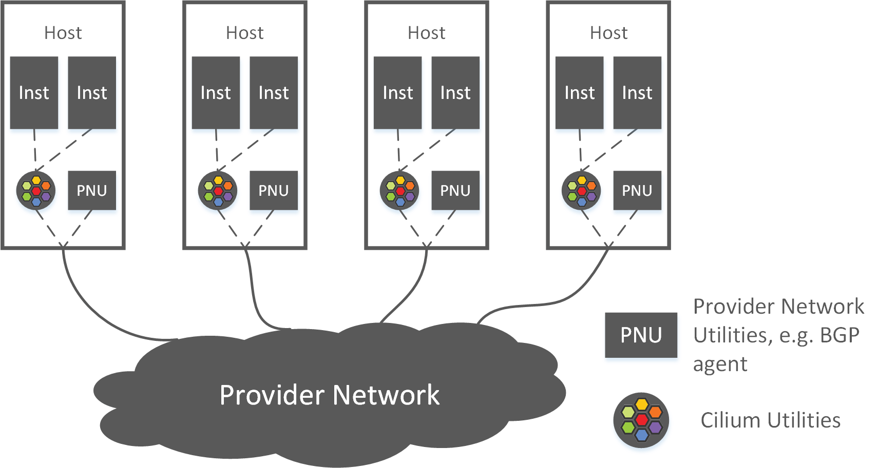 We use BGP for inter-host communication, and choose Bird [2] (2.x version) as BGP agent.