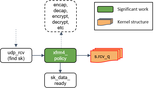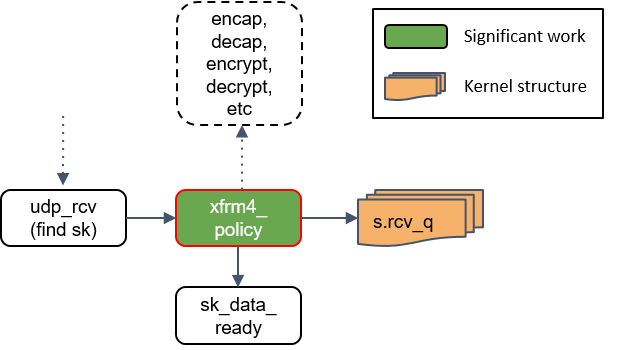 xfrm4_policy() 完成对包的封装、解封装、加解密等工作。例如,IPSec 就是在这里完成的。