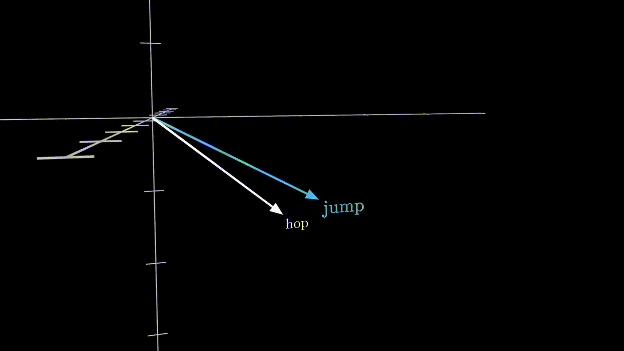词义相近的四个单词 “leap/jump/skip/hop” 在向量空间中是相邻的