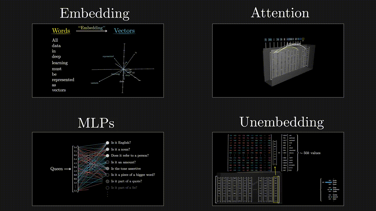 本文整理翻译了原视频的前半部分,通过可视化方式解释 GPT/Transformer 的内部工作原理。 原视频后面的部分是关于 general deep learning, machine learning 等等的基础,想继续学习的,强烈推荐。